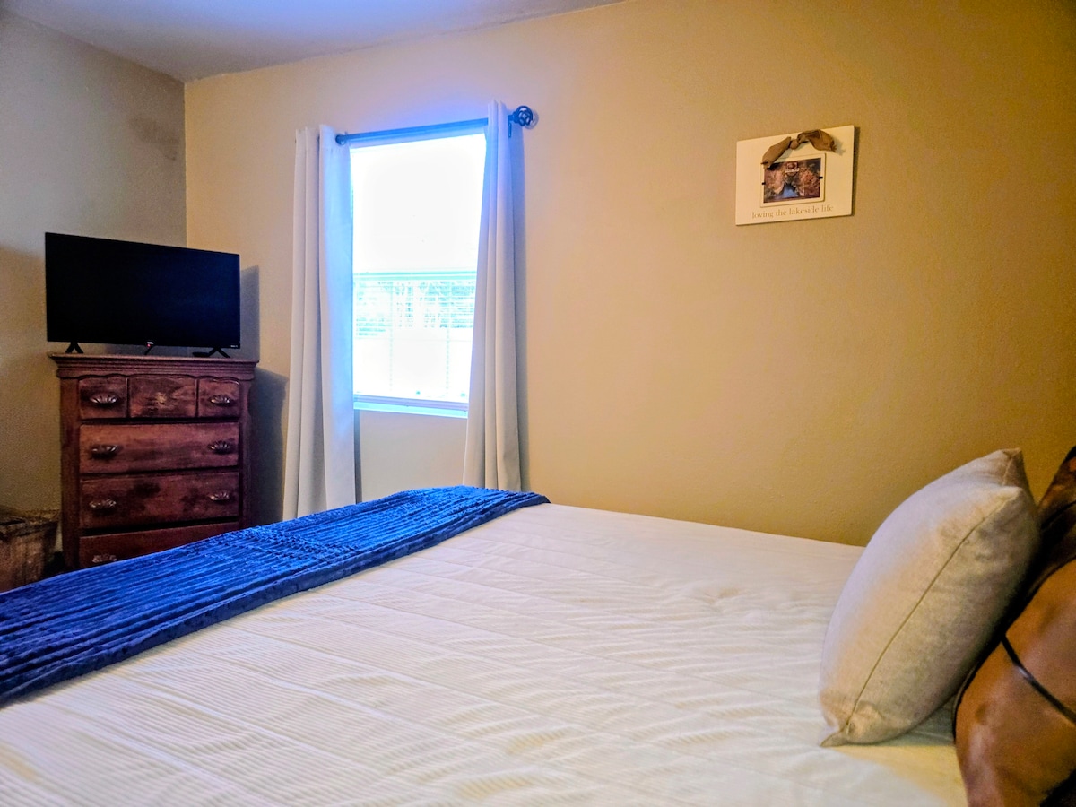 The Ultimate Cozy Factor: Unwind after a day of adventure on a plush memory foam king bed and enjoy the crackle of a real wood-burning fireplace.