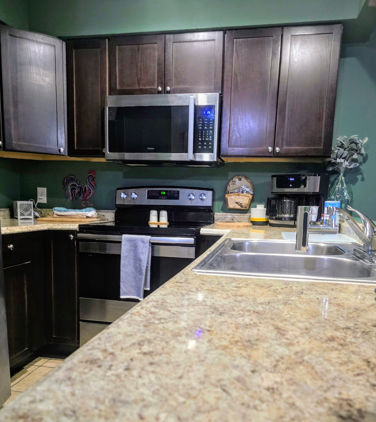 You can prepare delicious meals easily in the well-equipped kitchen featuring modern appliances, and stream your favorites on the two Roku TV's in living room and bedroom.